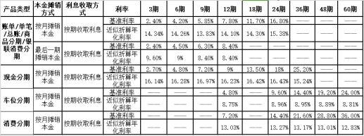 4.分期利息收取標(biāo)準(zhǔn)如下: